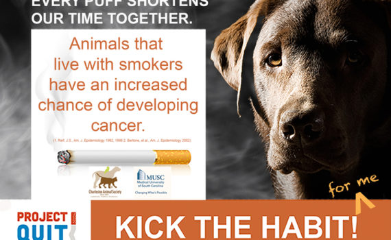 Charleston Animal Society is teaming up with researchers at MUSC to help smokers kick the habit! This alliance for “Project Quit” may seem surprising, but when you consider that pets are suffering from second-hand smoke and other nicotine dangers, the teamwork is the perfect combination. “So many people are surprised […]